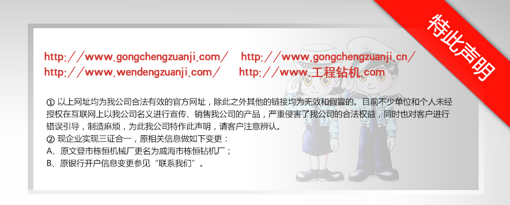威海市棟恒鉆機(jī)廠隸屬于文登市工程鉆機(jī)廠,主要生產(chǎn)、銷售工程鉆機(jī)。它坐落于文登市西鋪頭工業(yè)園,這里科技發(fā)達(dá),交通便利,制造業(yè)集中。 自1982年建廠以來(lái),經(jīng)過(guò)多年的優(yōu)化改革和沉淀積累,擁有精密、大型加工設(shè)備近百臺(tái)的生產(chǎn)企業(yè)之一。現(xiàn)在研制成功的GJ-400、GJ-250S、GJ-250A、GJ-240S、GJ-240A、GJ-180S、GJ-180A型等鉆機(jī)。在其它產(chǎn)品上,企業(yè)建立了長(zhǎng)期、中期、短期的發(fā)展規(guī)劃,一系列的高性能產(chǎn)品正在不斷推出中,企業(yè)應(yīng)市場(chǎng)需求對(duì)系列產(chǎn)品進(jìn)行了優(yōu)化組合,開(kāi)發(fā)了與之對(duì)應(yīng)配套的三腿、四腿單天車(chē)輪、雙天車(chē)輪鉆塔;泥漿泵—BW-160Q、BW- 200Q型球形閥泥漿泵大大提高了泵的使用性能和機(jī)械效率